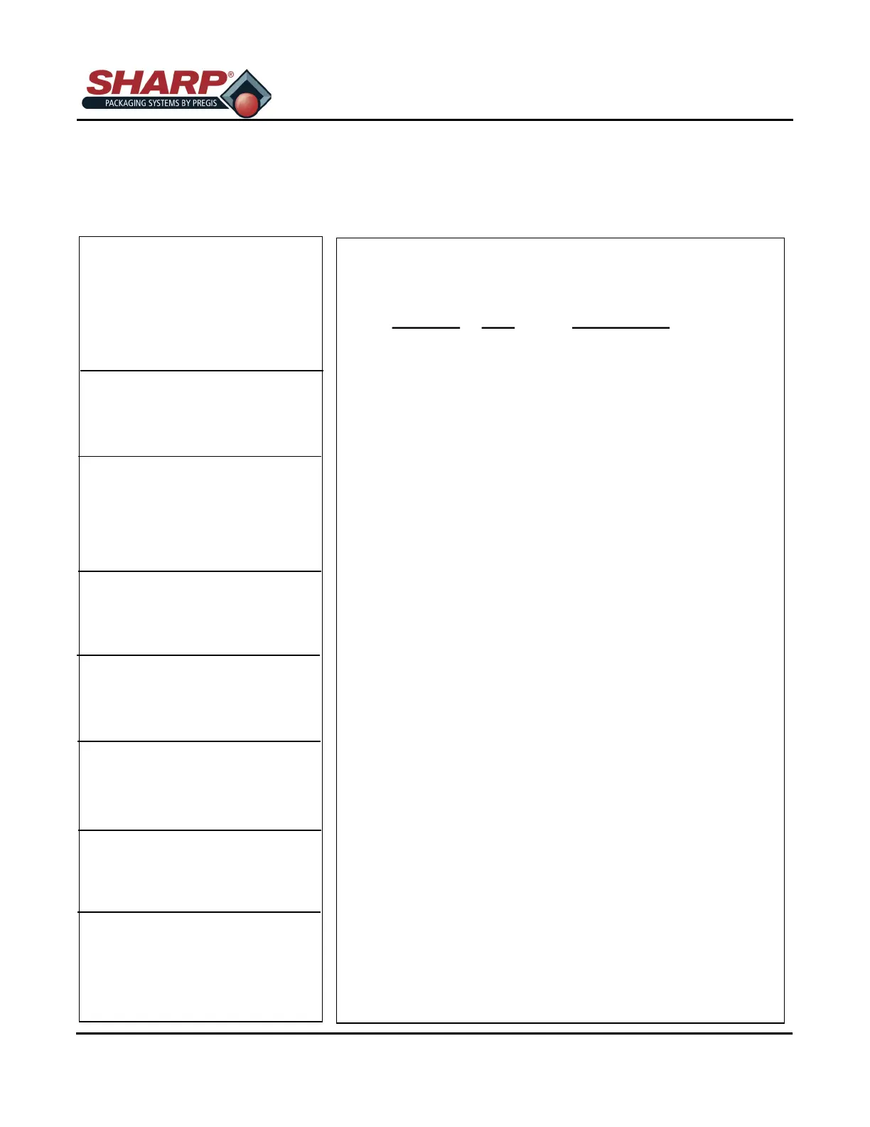 Spare or replacement parts can be purchased directly through Sharp Packaging or your local distributor. If