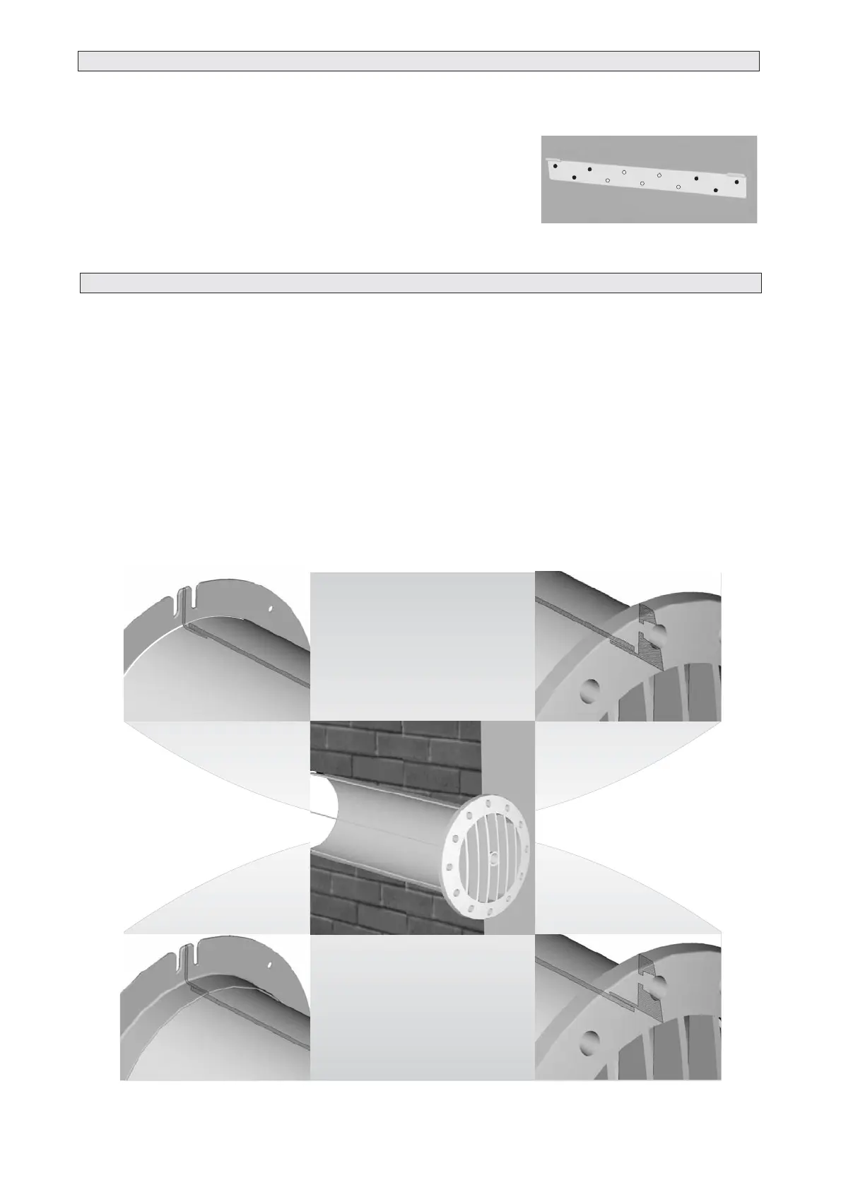 Fit the plastic pipe into the hole and fasten the flange with 2x6 mm screws and wall plugs.