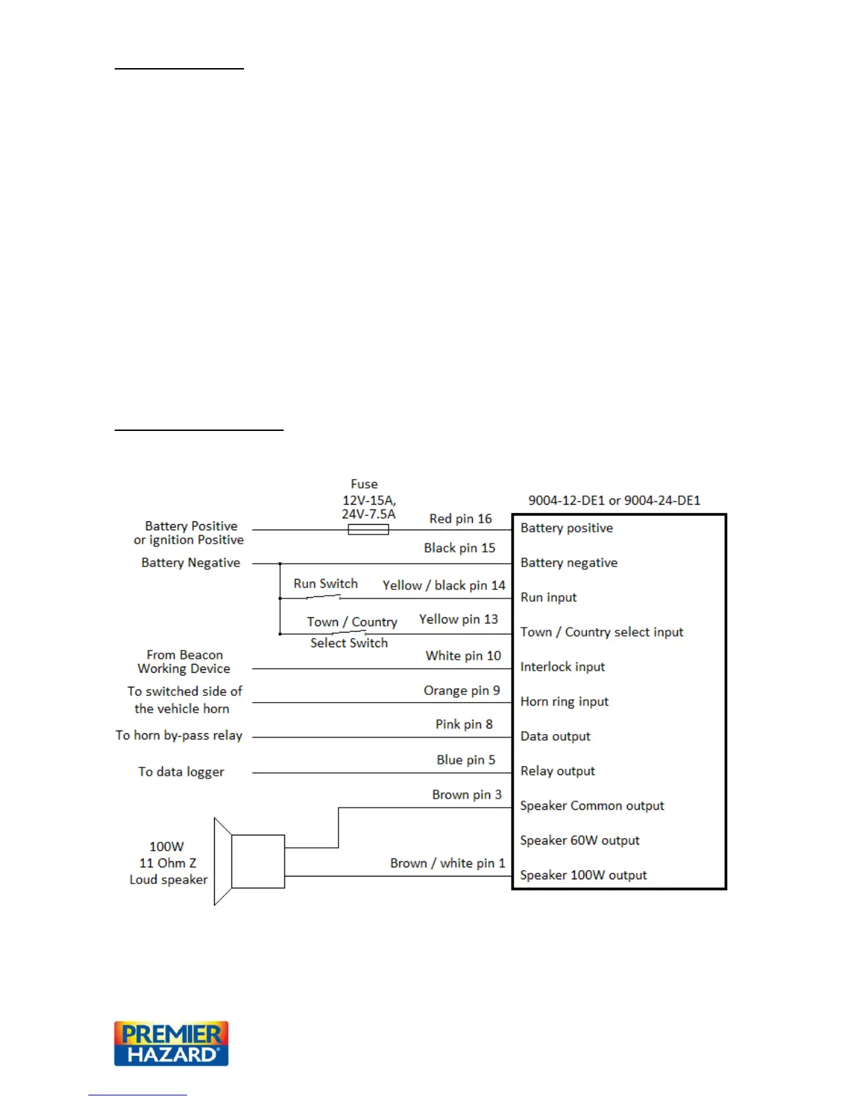sound, such as a beacon interlock device. If not used connect to battery positive to enable tones.