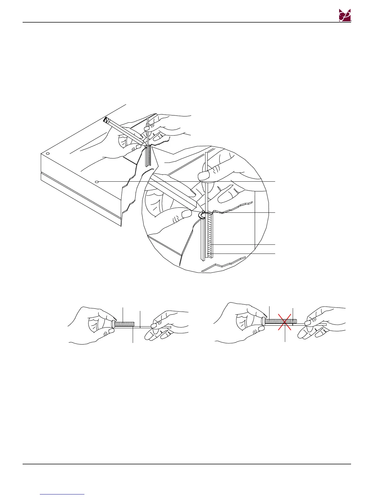 Step 3. If your selected screw is longer than the marking on the thread depth indicator, DO NOT USE this screw.