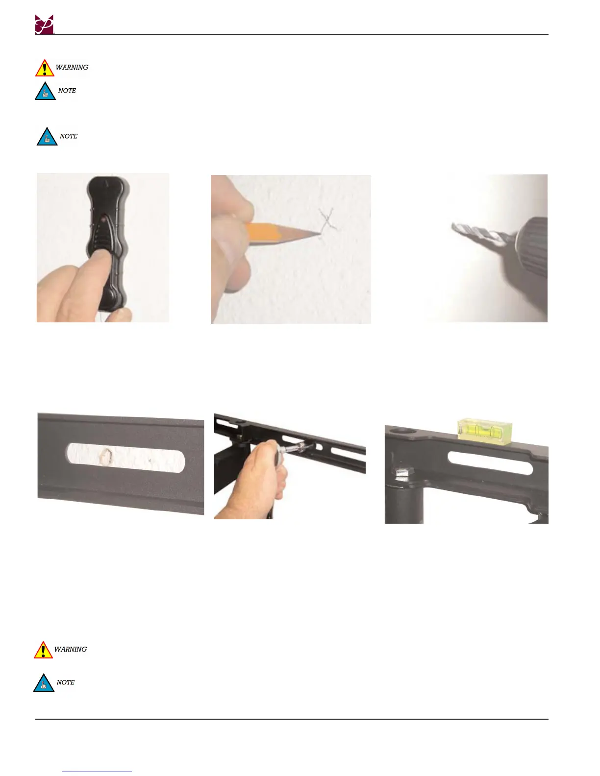 Do NOT over-tighten lag bolts when attaching the mount to the wall. Improper installation may result in personal