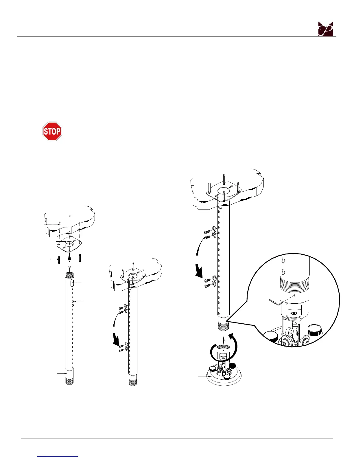 5. Once the APP-2446 Adapter has been attached to the ceiling accessory, you may install the projector/display mount. Be sure to
