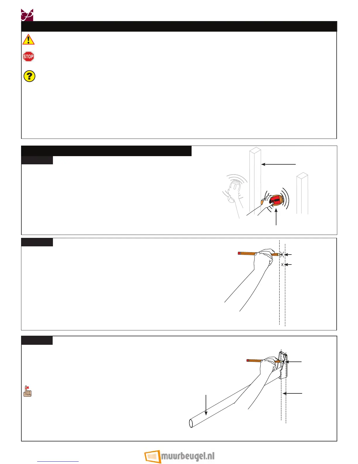 Use an electronic stud nder (not supplied) to