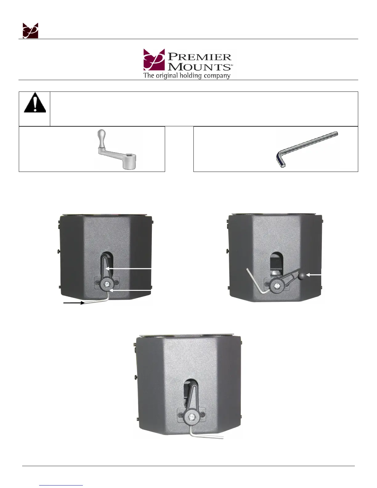 The RTM-L is shipped with the hand crank in the storage position. The hand crank must be removed