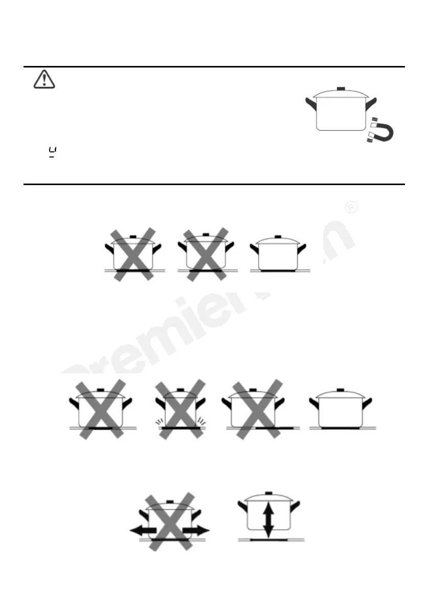 • Cookware made from the following materials is not suitable: pure stainless steel, aluminium or