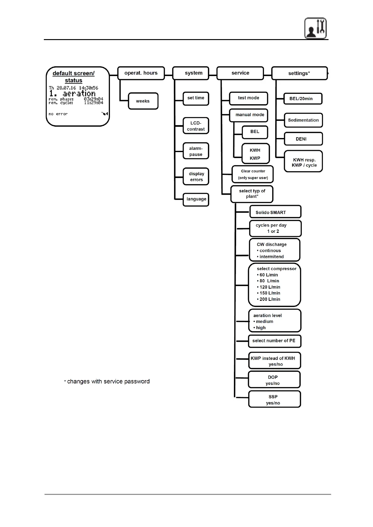 PREMIER TECH Solido SMART - S40 control unit and available settings; Solido SMART S40 menu overview