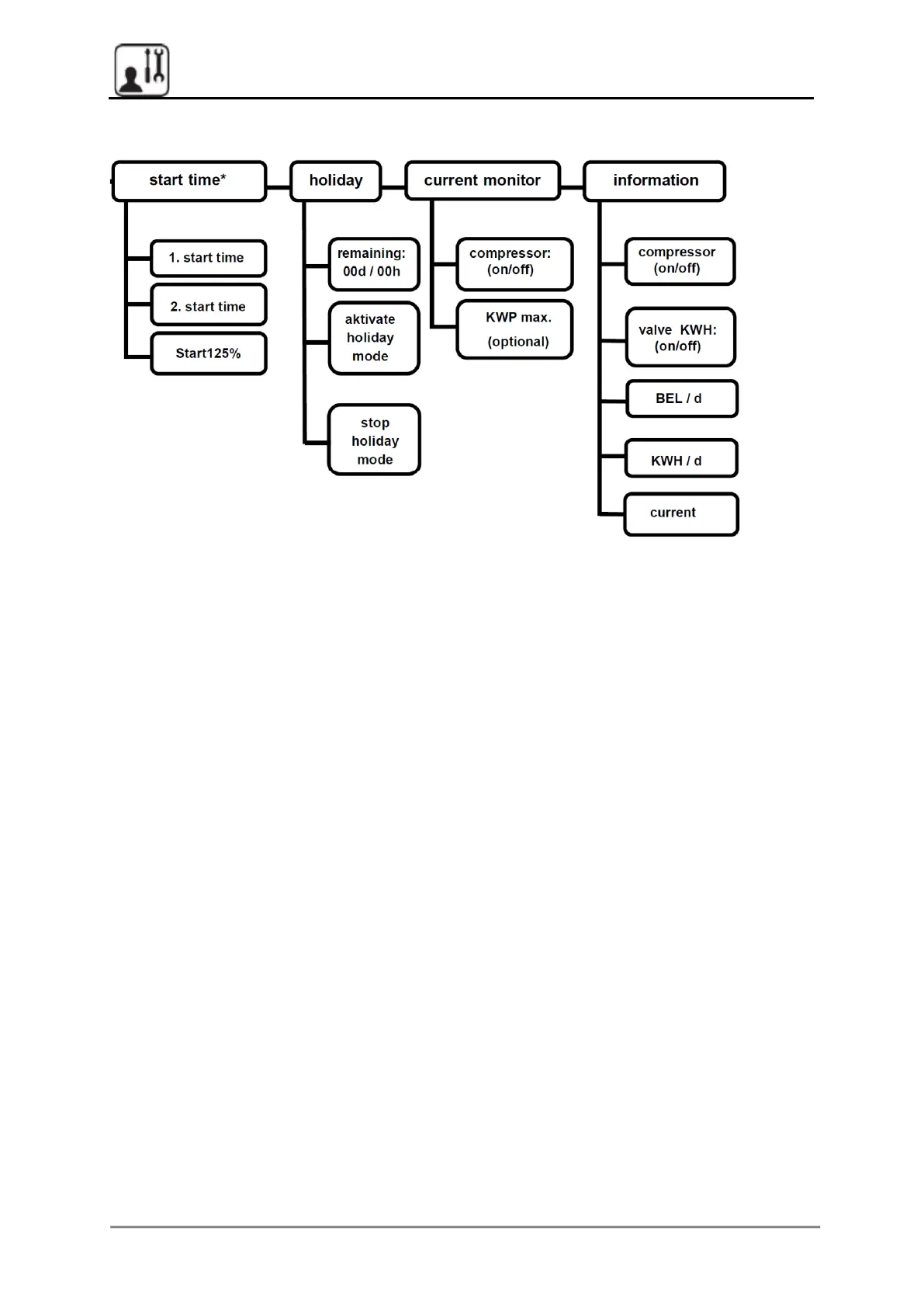 PREMIER TECH Solido SMART - S40 control unit and available settings; start time*; holiday; current monitor
