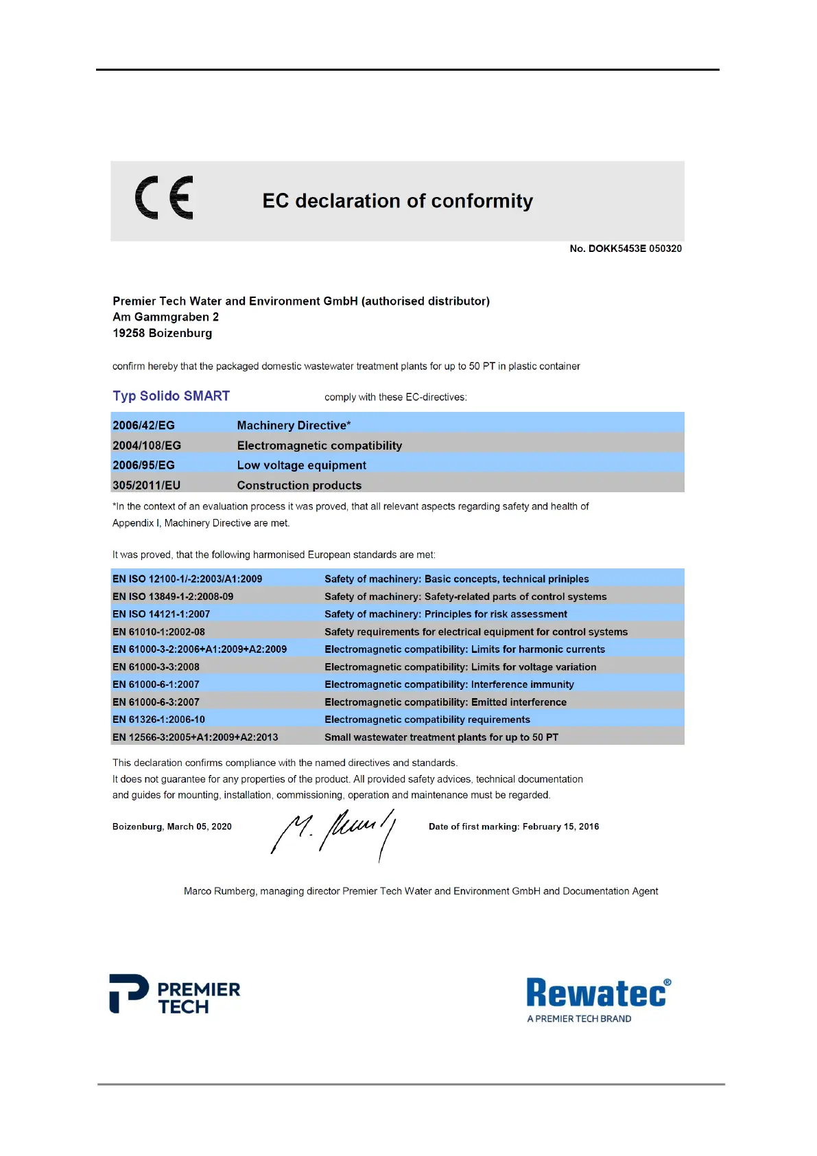PREMIER TECH Solido SMART - Appendix; EC declaration of conformity