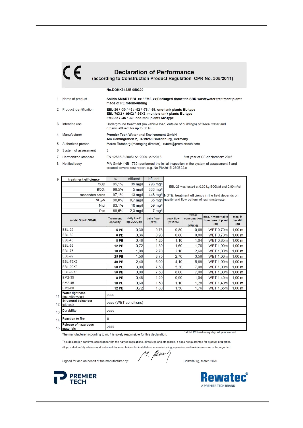 PREMIER TECH Solido SMART - Appendix; Declaration of performance according to the Construction Products Regulation