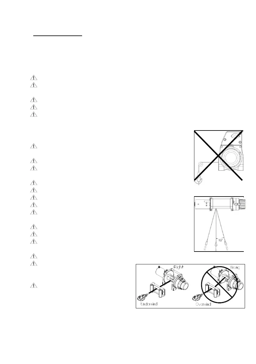 The winch is not to be used as a lifting device or a hoist for vertical lifting