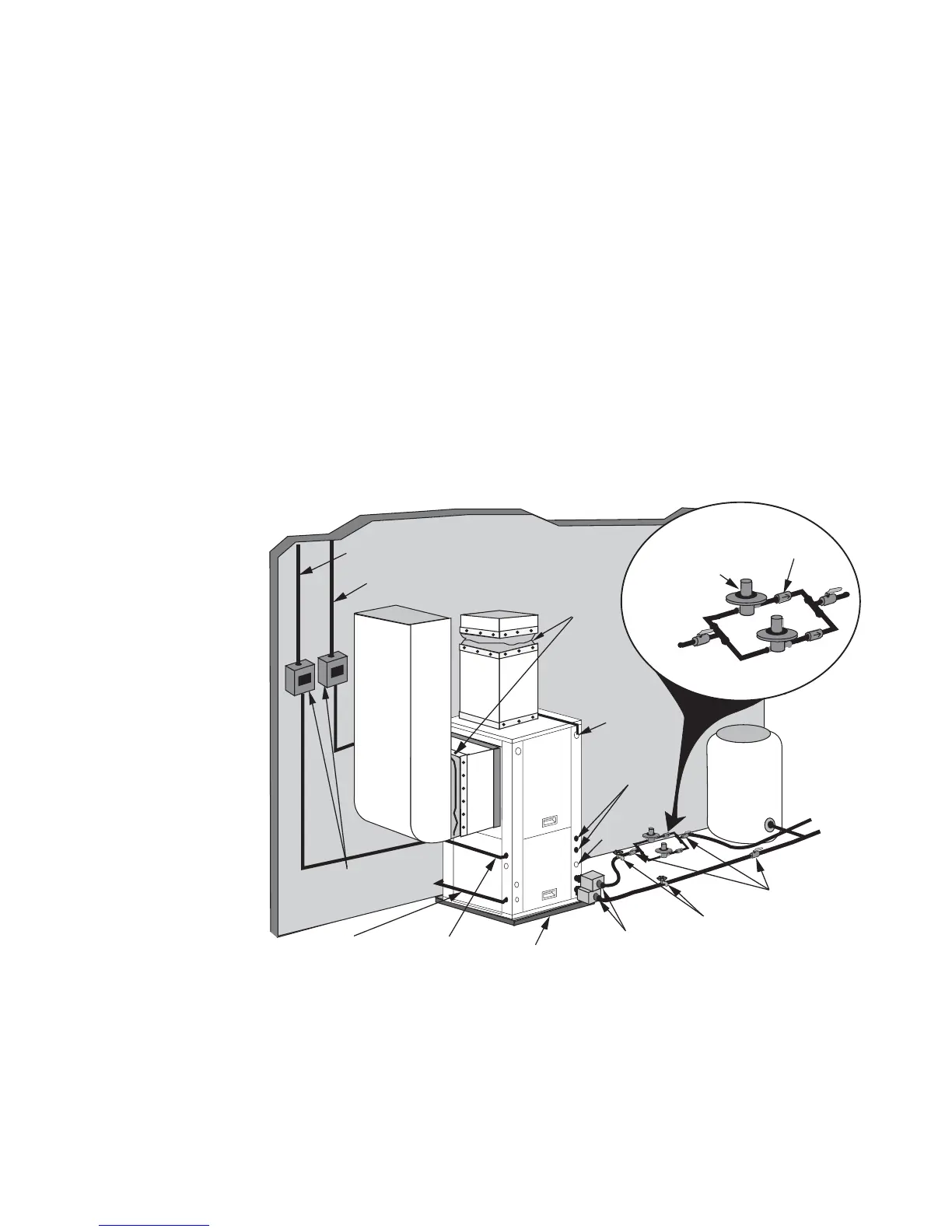 Typical open loop piping is shown in Figure 8. Always maintain water pressure in the heat