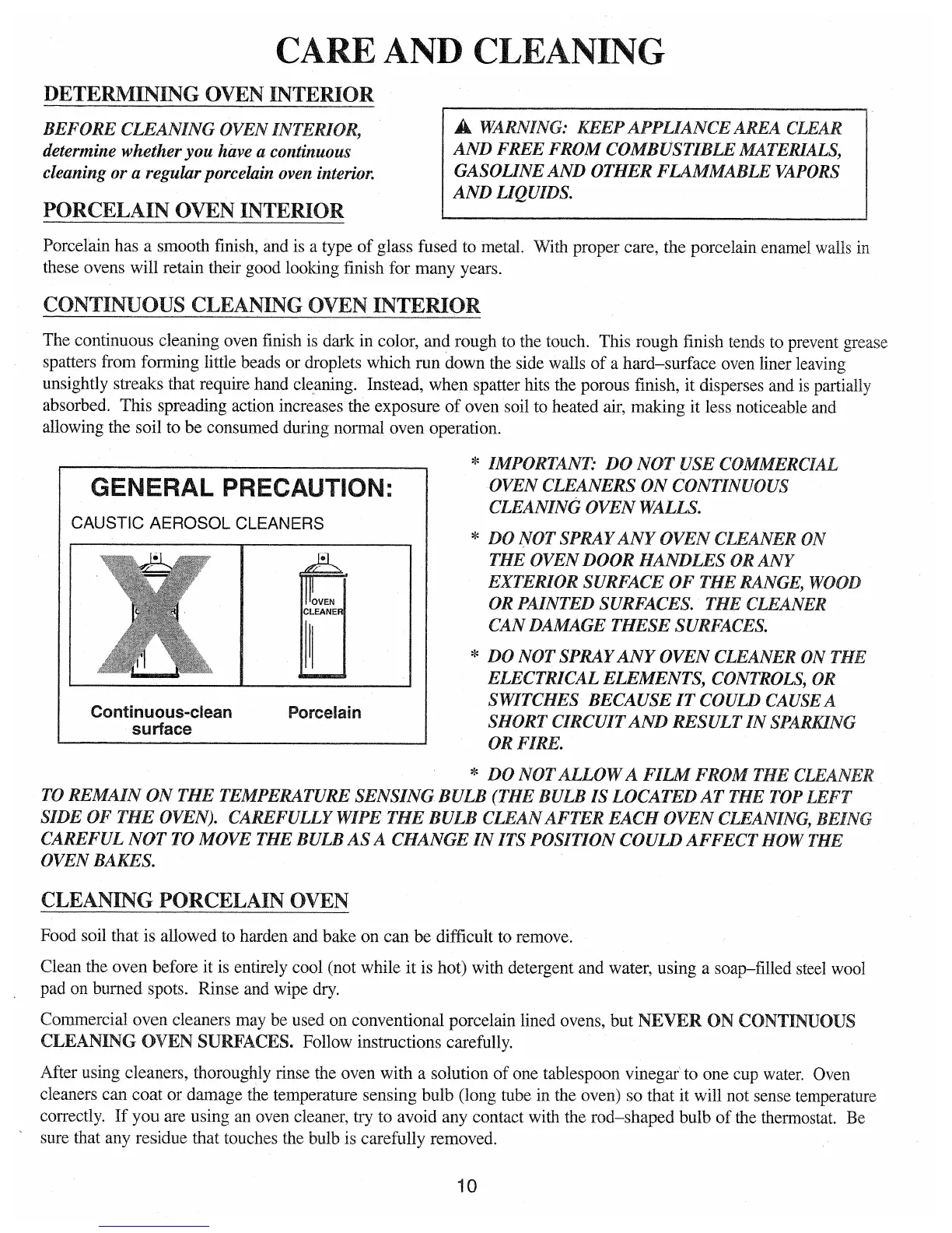 Premier EAKL0AOP - Care and Cleaning; Oven Interior Cleaning Procedures