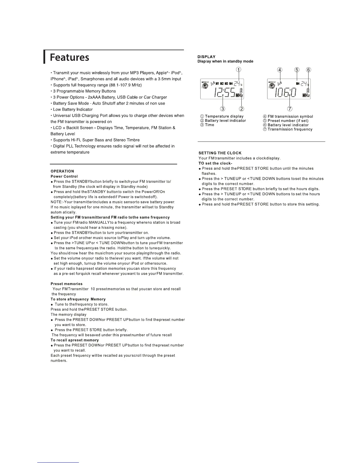 Premier PWFMT1 - Features; DISPLAY; Temperature Indicator; Battery Indicator