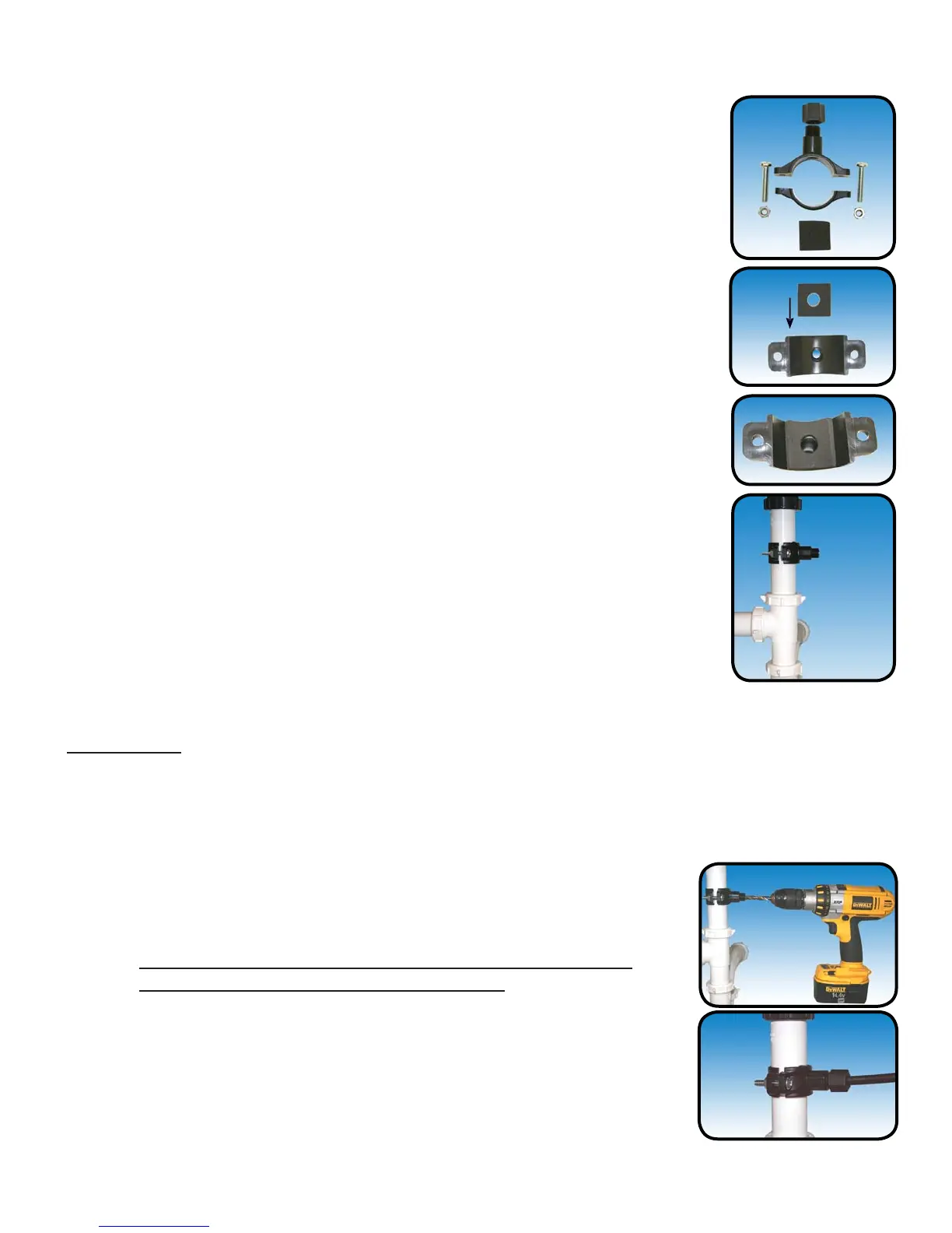Do not over tighten the screws. It may crack the drain saddle.