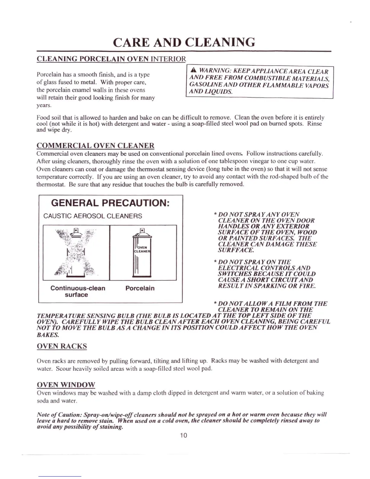 Premier SAK600BP - Care and Cleaning Procedures; Cleaning Oven Interior, Racks, and Window