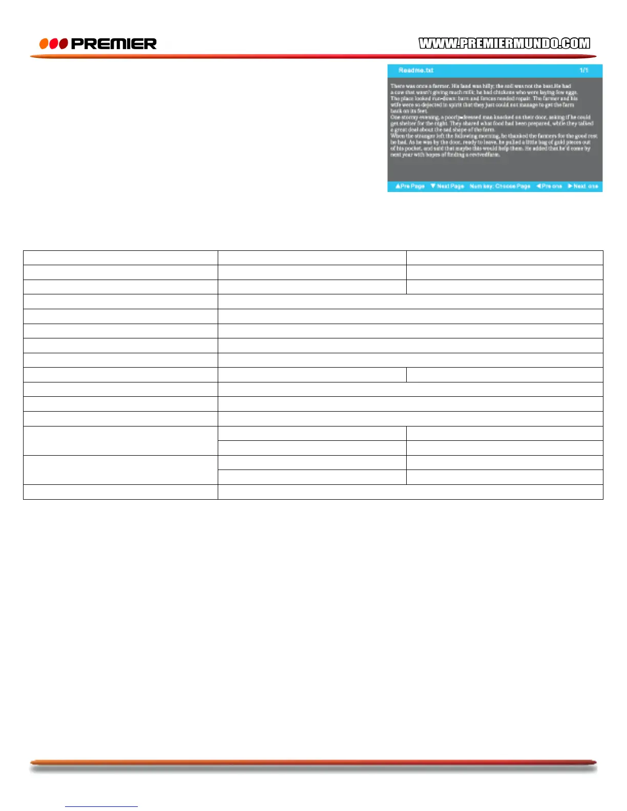Premier TV-4802LED - Texto; Especificaciones
