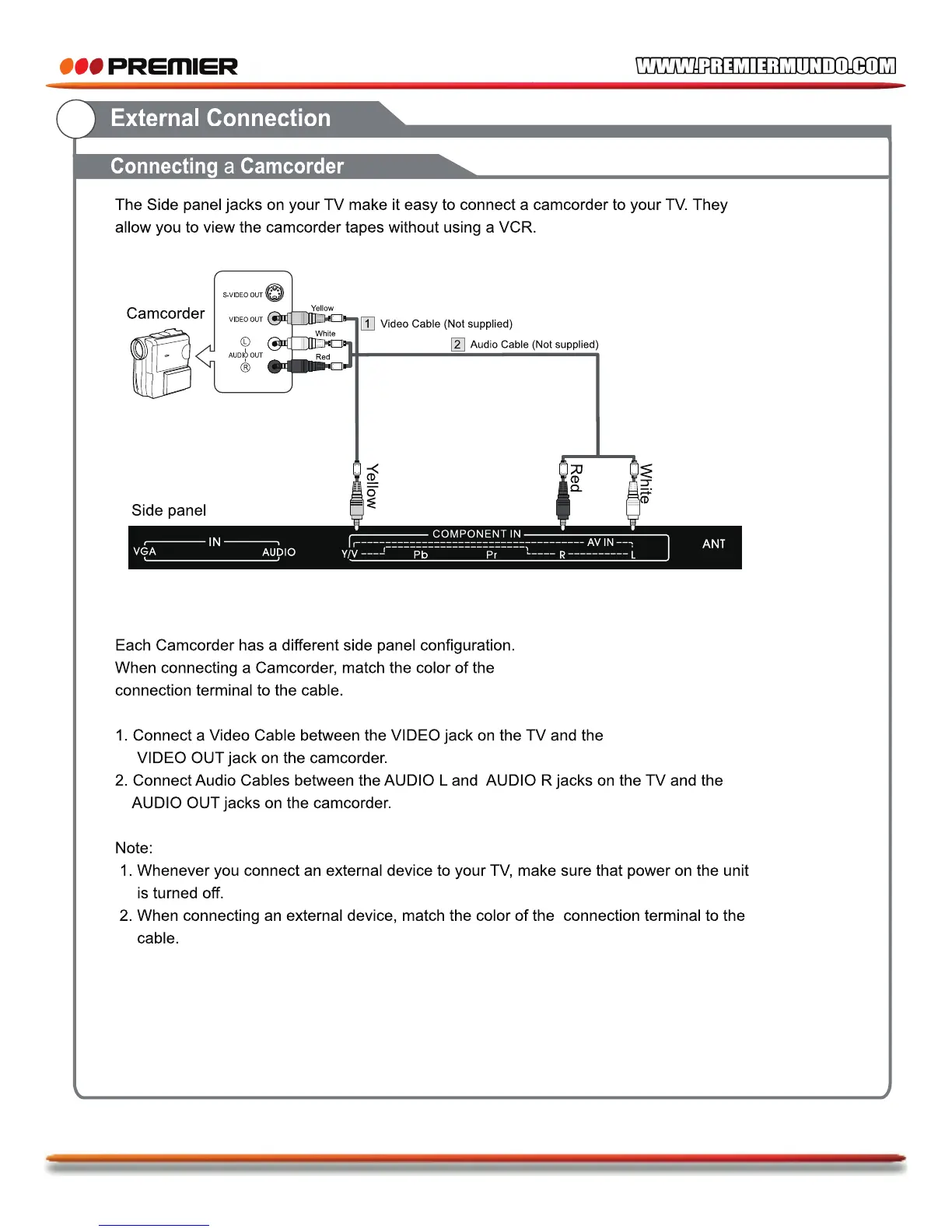 Premier TV-4802LED - Connecting a Camcorder