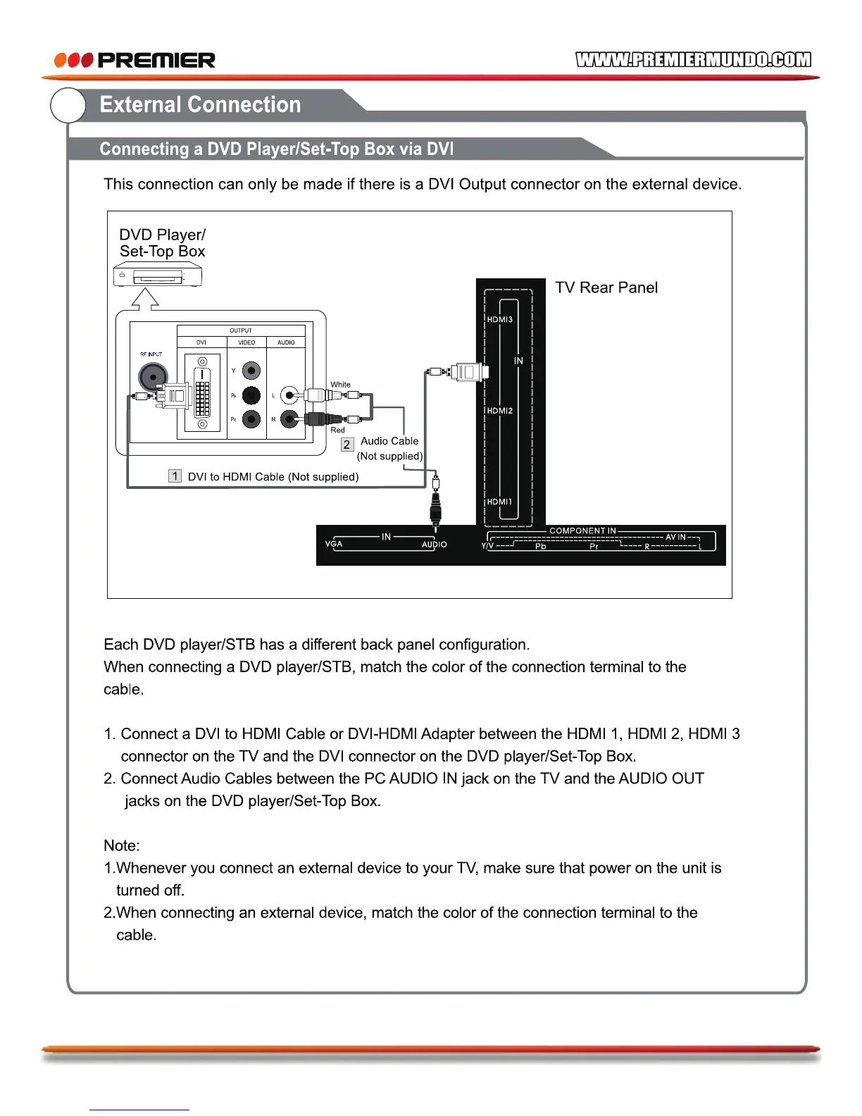 Premier TV-4802LED - Connecting DVD;Set-Top Box via DVI