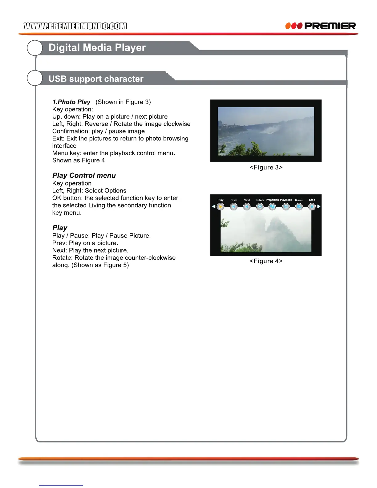 Premier TV-4802LED - USB Media Player Support; Photo Playback Operation; Photo Playback Control Menu