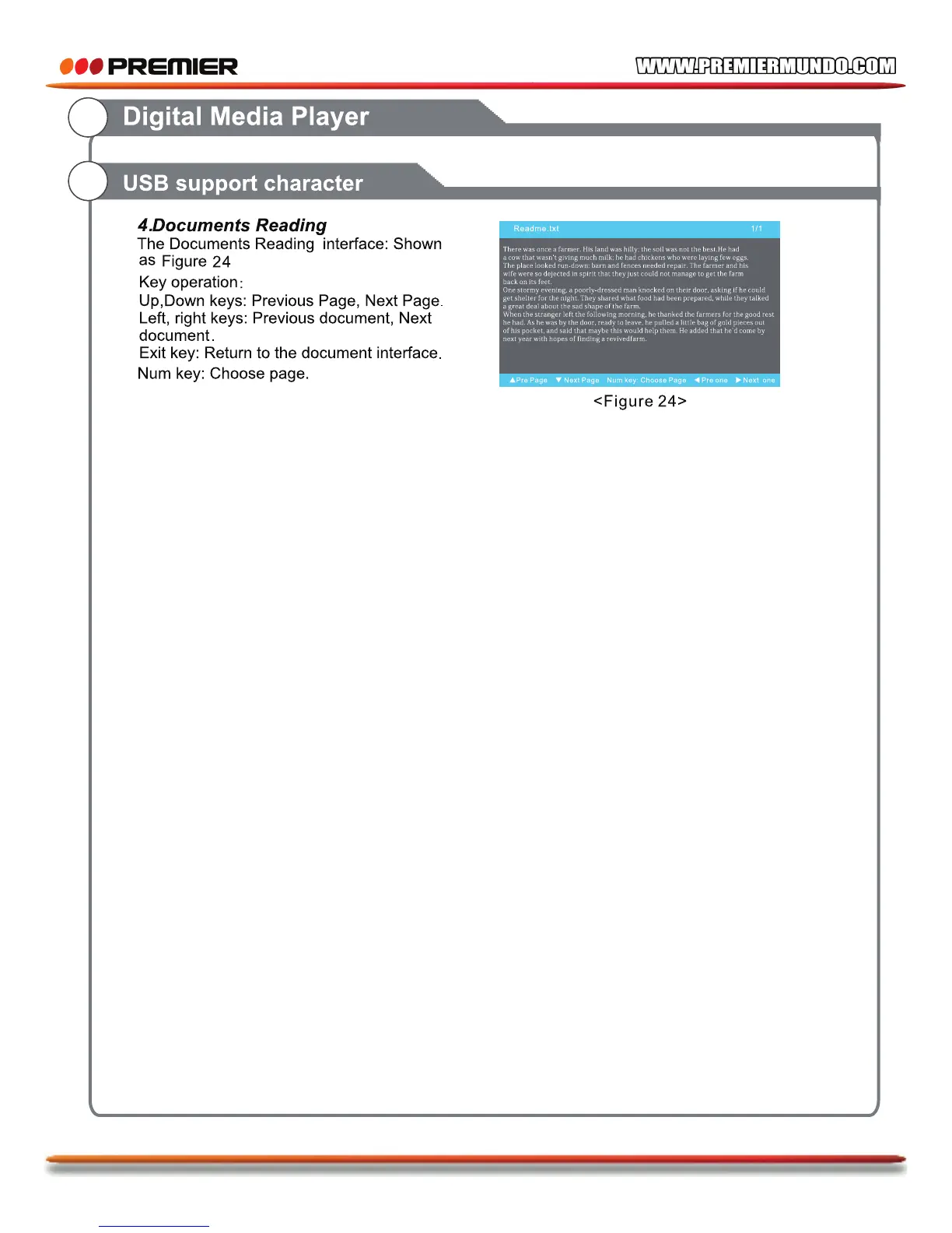 Premier TV-4802LED - USB Document Reading; Document Reading Interface and Controls