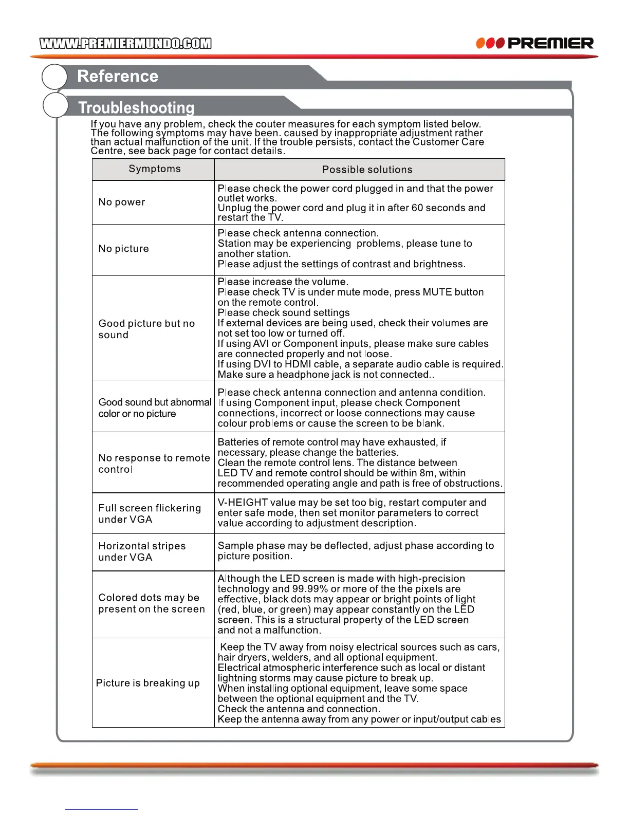 Premier TV-4802LED - Reference and Troubleshooting; Troubleshooting Common Issues