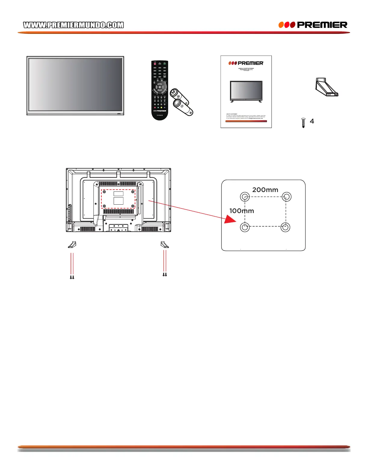 suministrado). El patrón de montaje vesa es de 200x100mm. Retire los soportes de los tornillos de la