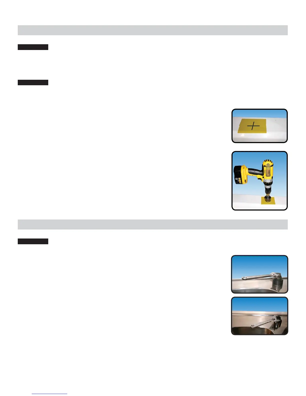 Step 1: Drill a ¼” pilot hole. Use a 1⁄2” Hole Punch and an adjustable wrench to