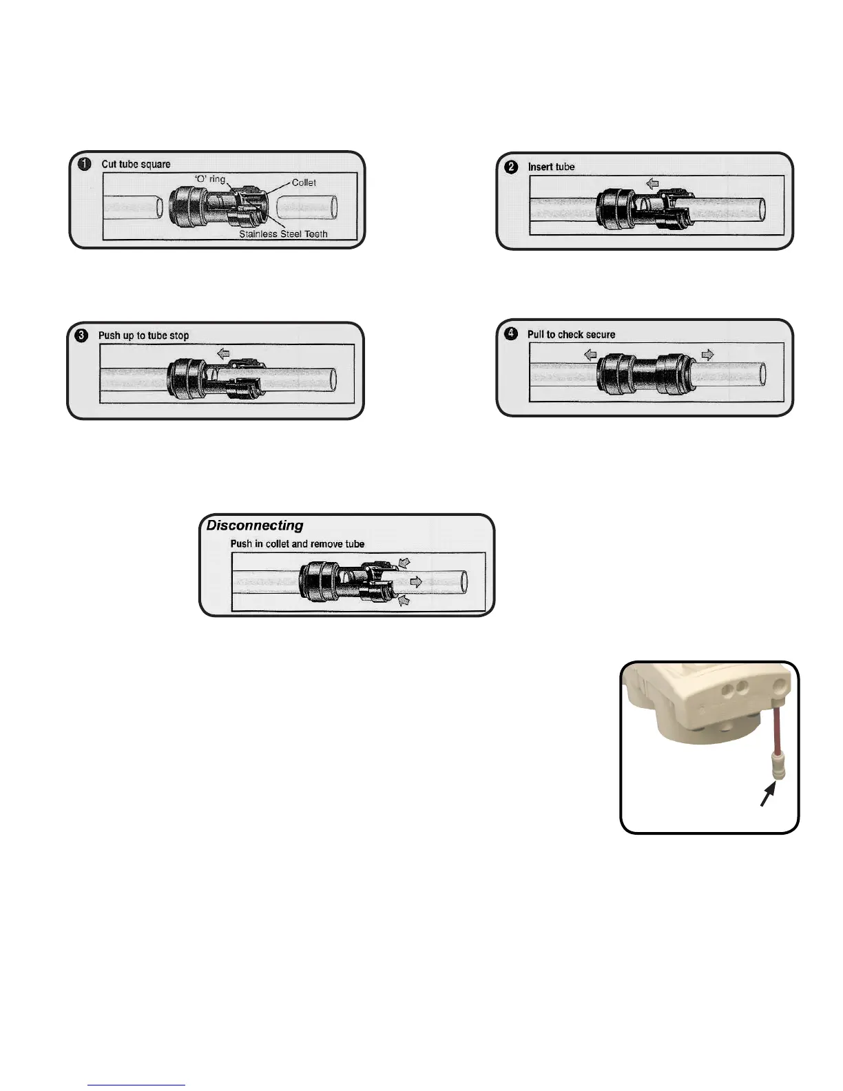 Push the tube into the tting, to the tube stop. The collet