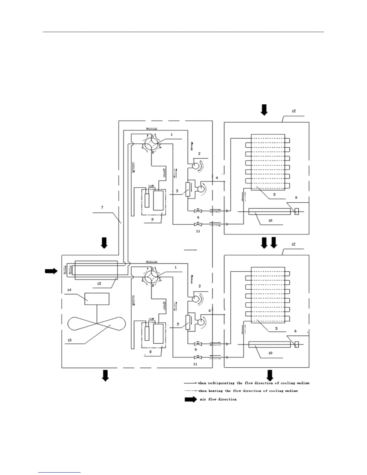 11 gas valve 12 indoor unit 13 condenser 14 outdoor motor 15 axial flow fan