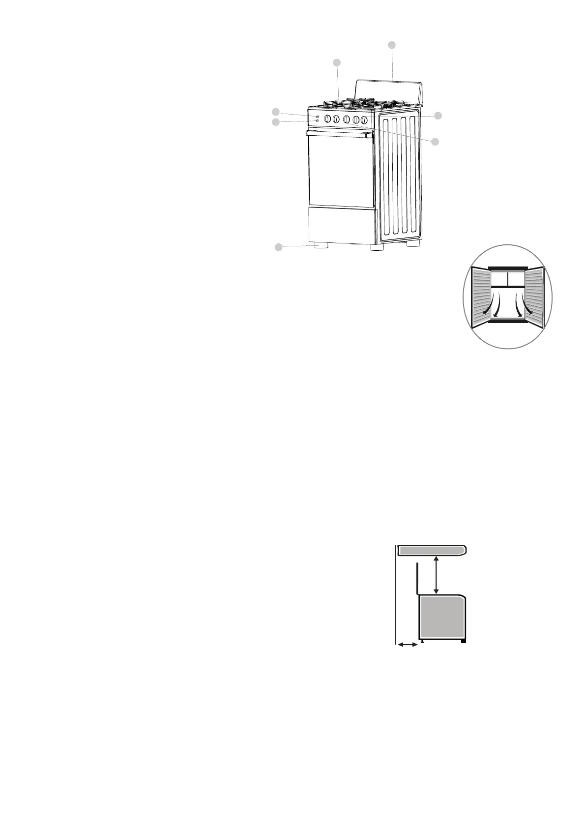 rejillas de ventilación de gas, al momento de instalar el horno.