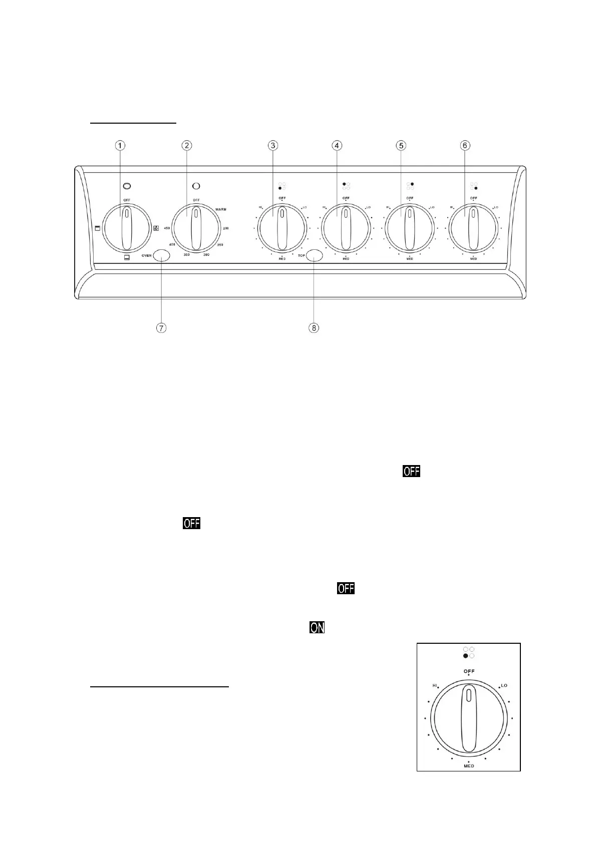 2. Oven Thermostat Knob 6. Front Right Burner Control Knob