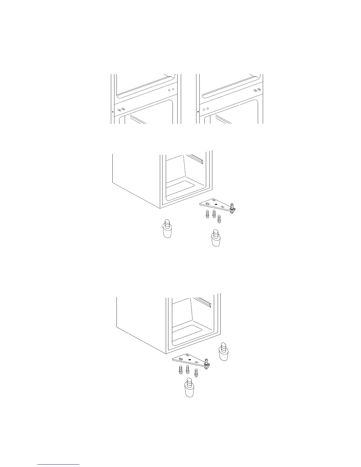 5. Replace both adjustable feet. Transfer the lower door to the property position. Secure the door's