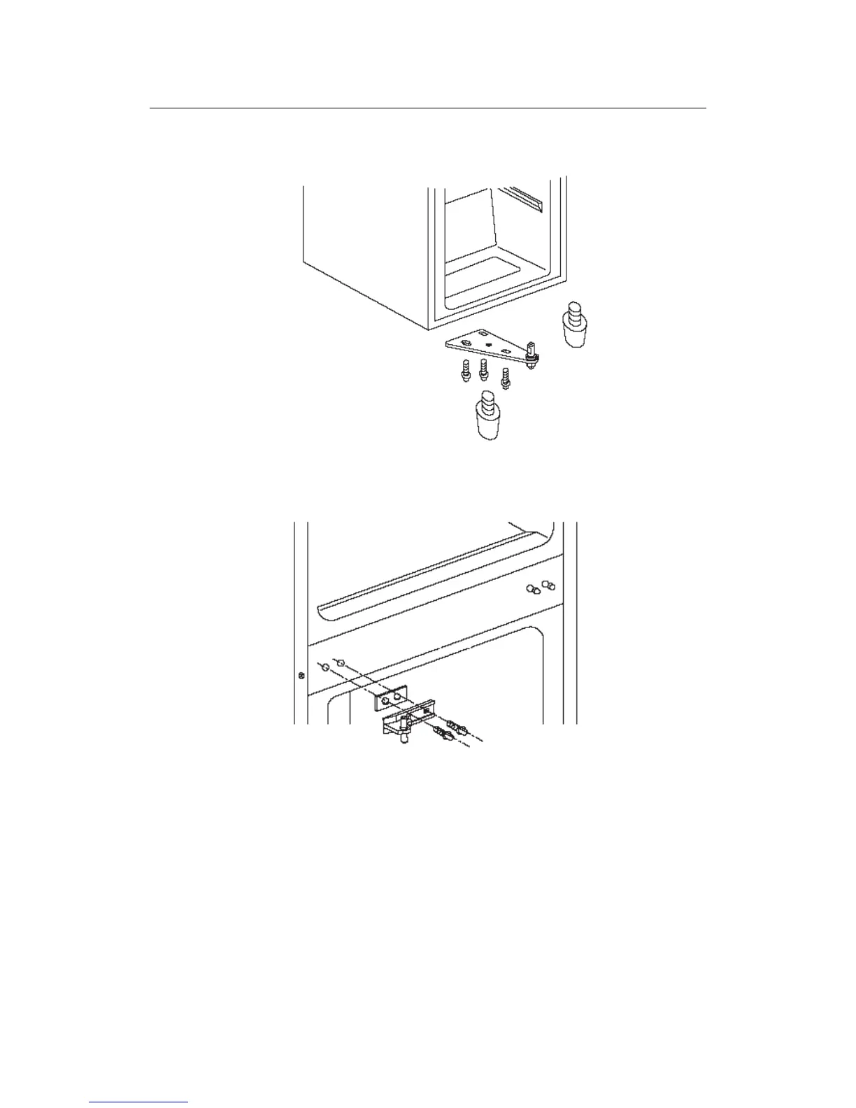 5) Reemplace ambos pues ajustables. Transfiera la puerta inferior a su sitio,
