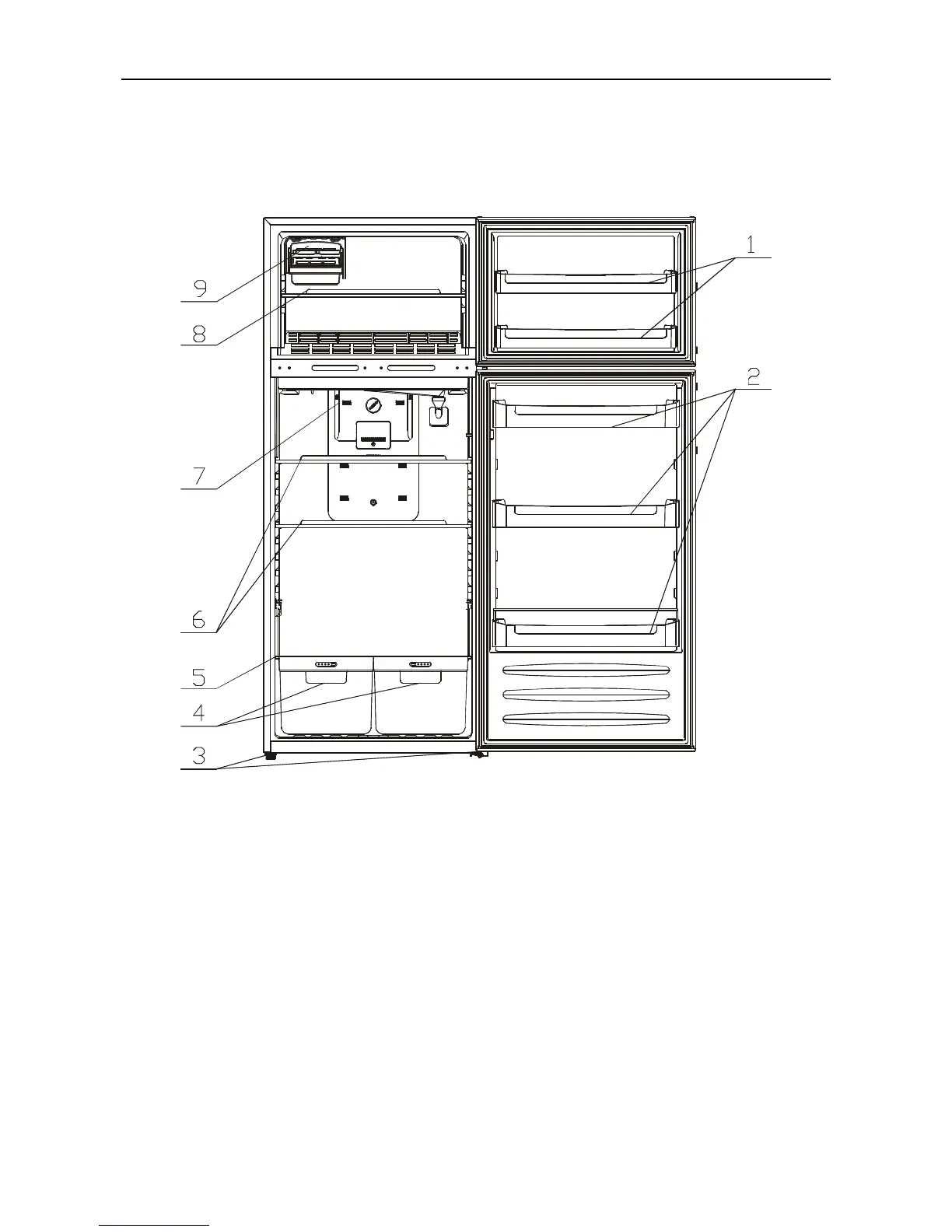 4. Vegetable drawer 8. Freezer shelf