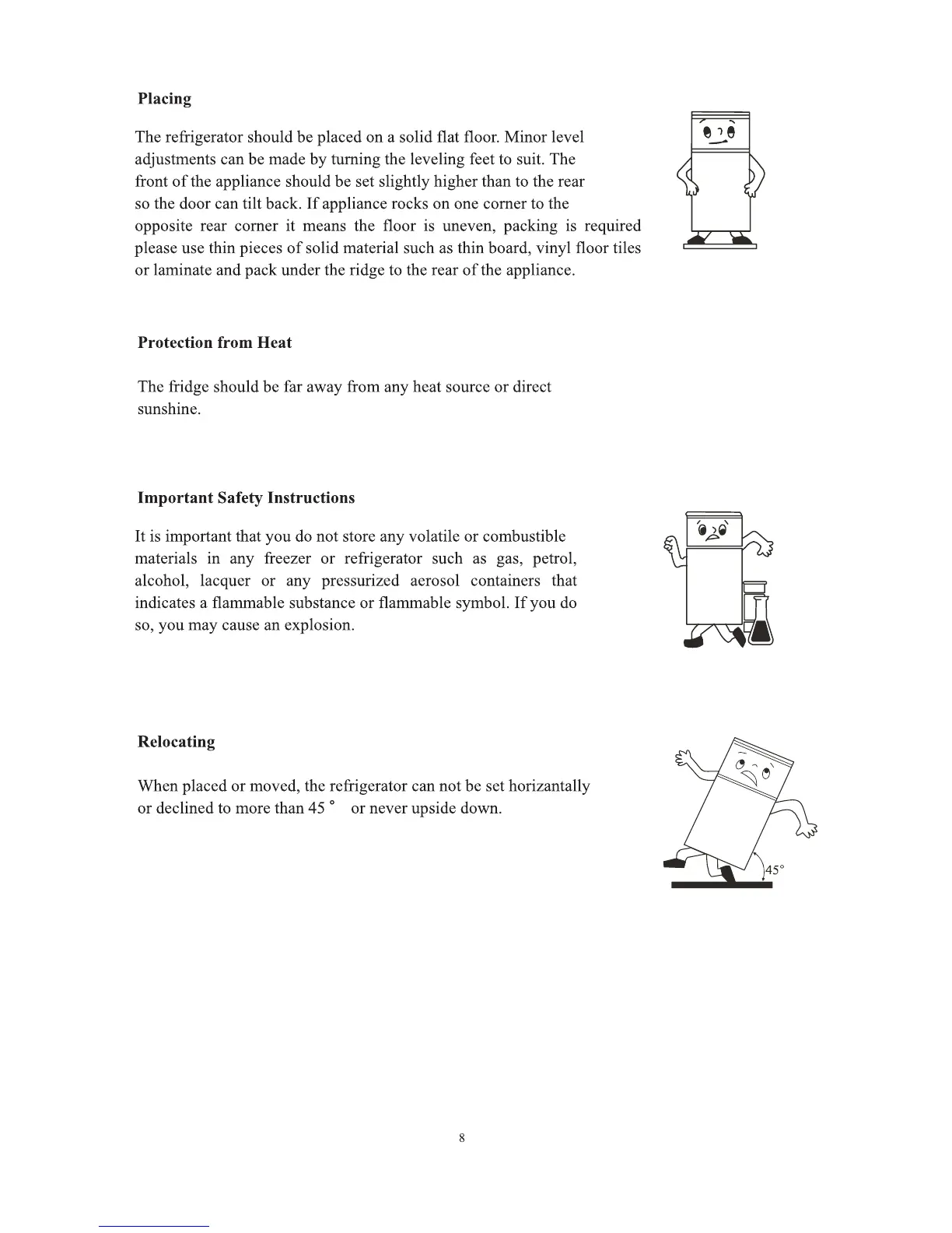 Premium PRN438HW - Placing; Protection from Heat; Important Safety Instructions; Relocating