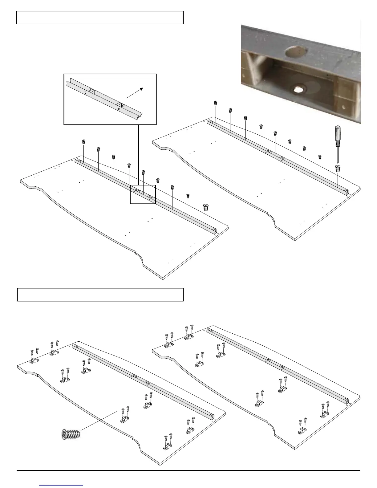 Attach metal U-channels to each outer gable using drawer slide screws