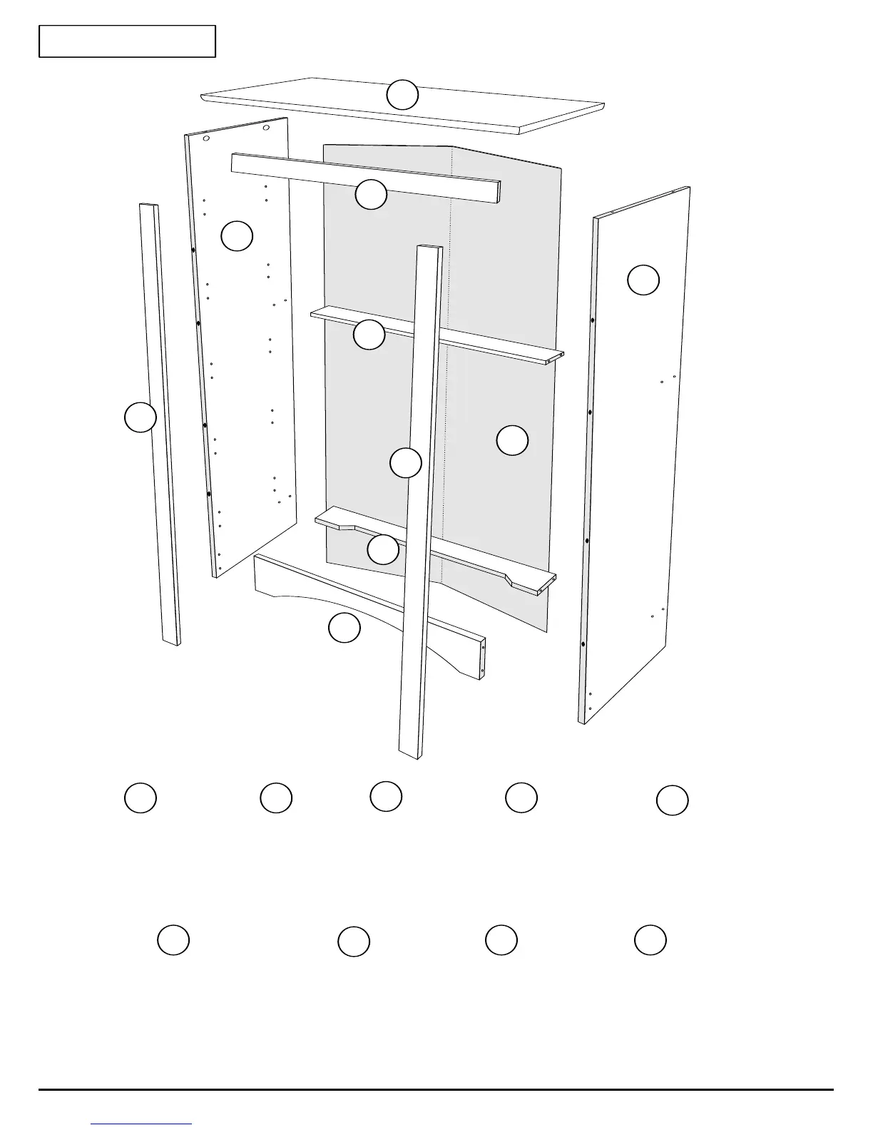 Prepac DC-3345 - Cabinet Parts Identification; Main Cabinet Panels; Stabilizers and Moldings; Backer Panel Identification
