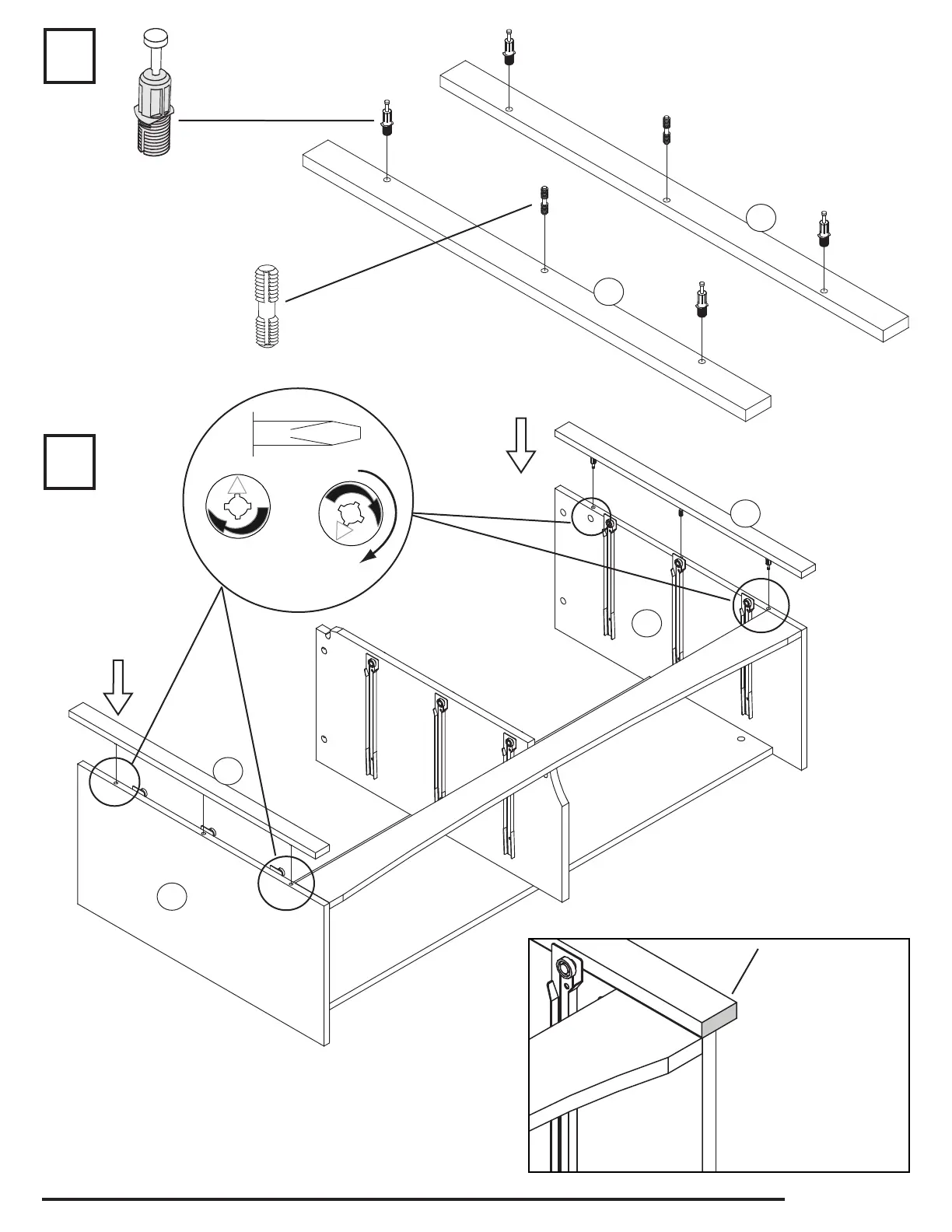 Prepac DC-6330-V - Main Frame Assembly - Step 4; Inserting Dowels and Rods for Connection; Connecting Frame Sections