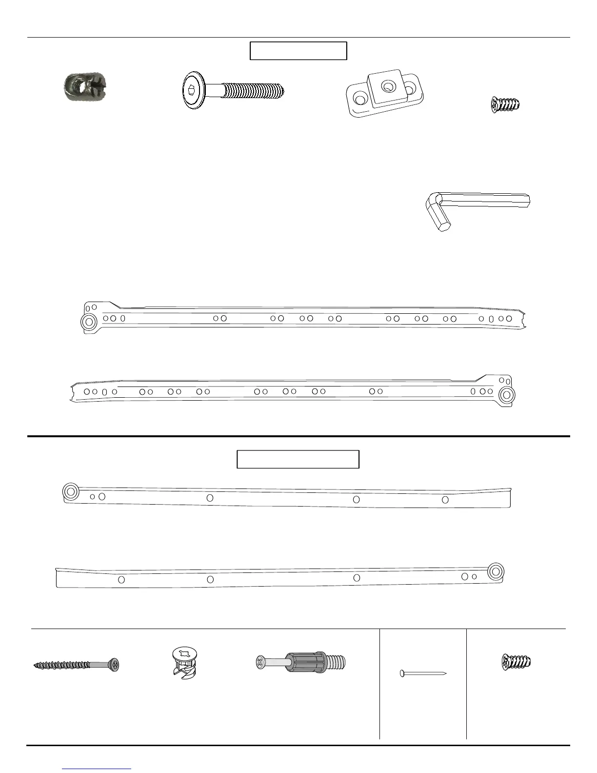 Prepac Queen - Hardware and Part Identification; Bed Frame Hardware; Drawer Hardware
