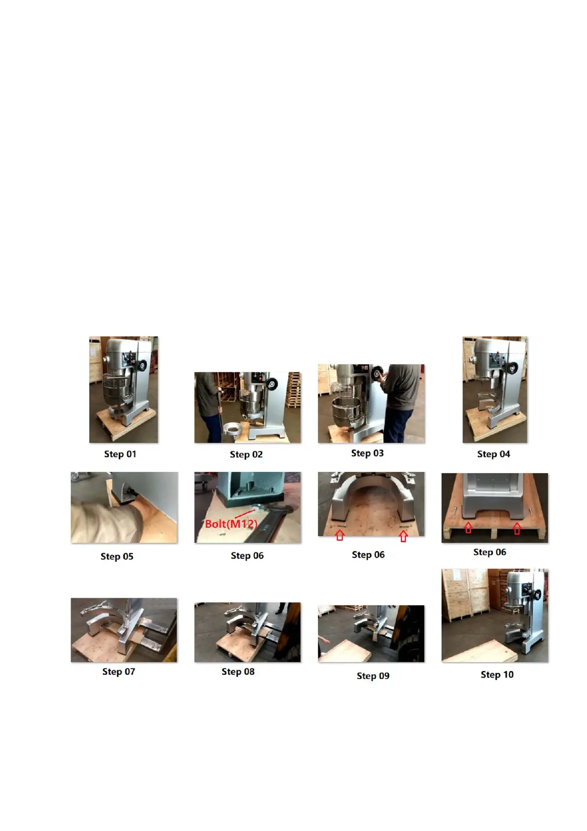 Step08:Slowlyliftthemixermachineupabout4”fromthepallet.