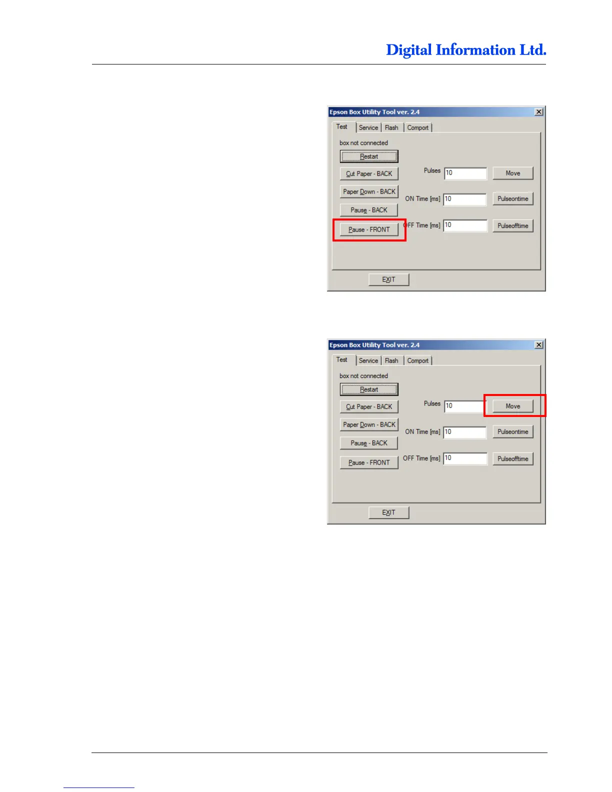 Preproofer 770 - Test Pause FRONT; Test Paper MOVE