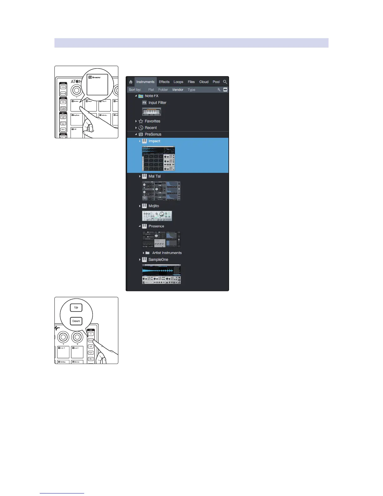 While the Browser is active, you can use the Up and Down buttons to navigate