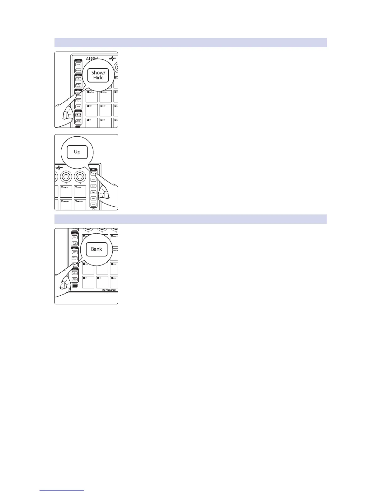 send CC messages. To disable Note On/Off for any pad, press the Show/Hide button