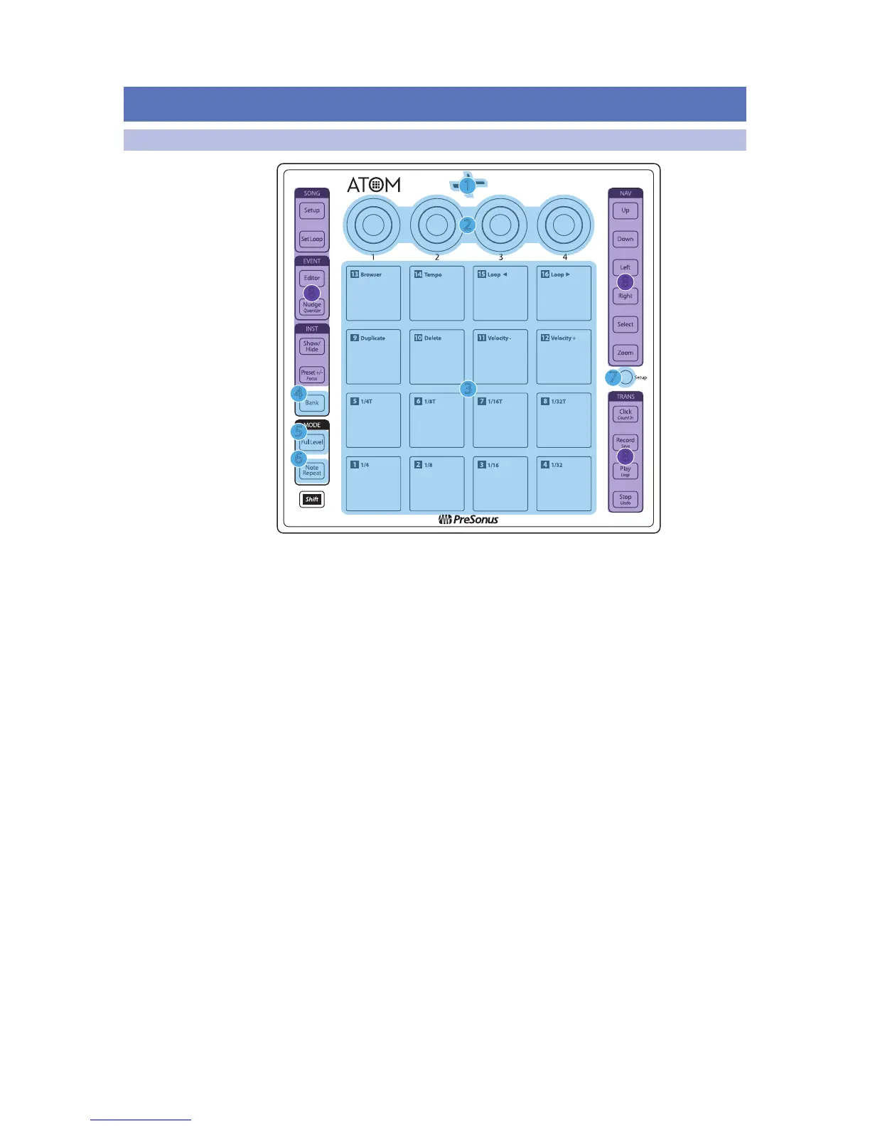 4. Bank. Use this button to switch between pad banks 1-8. Each bank can