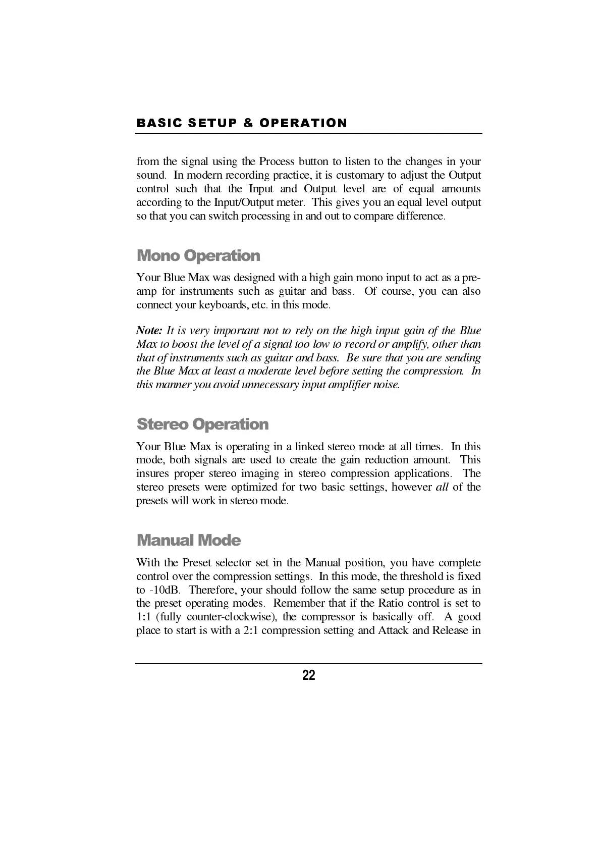 Your Blue Max is operating in a linked stereo mode at all times. In this