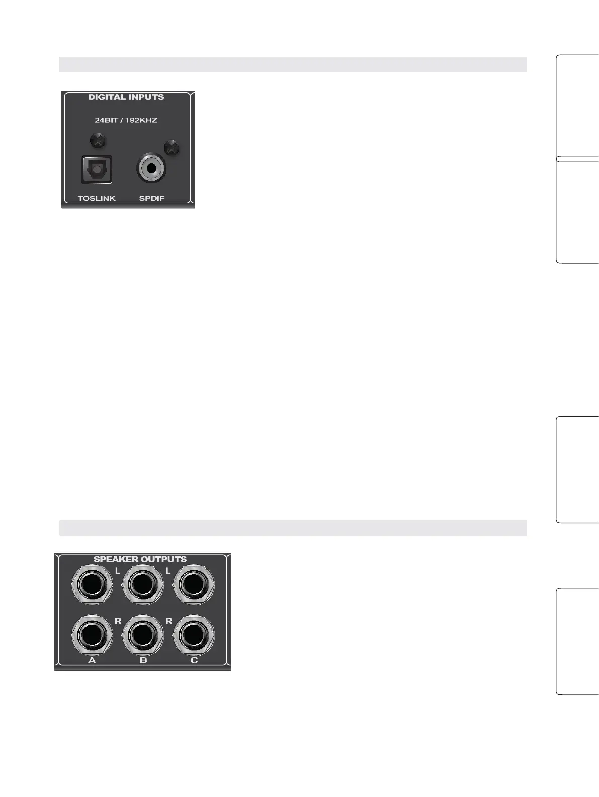 Speaker Outputs L/R (A, B, and C)