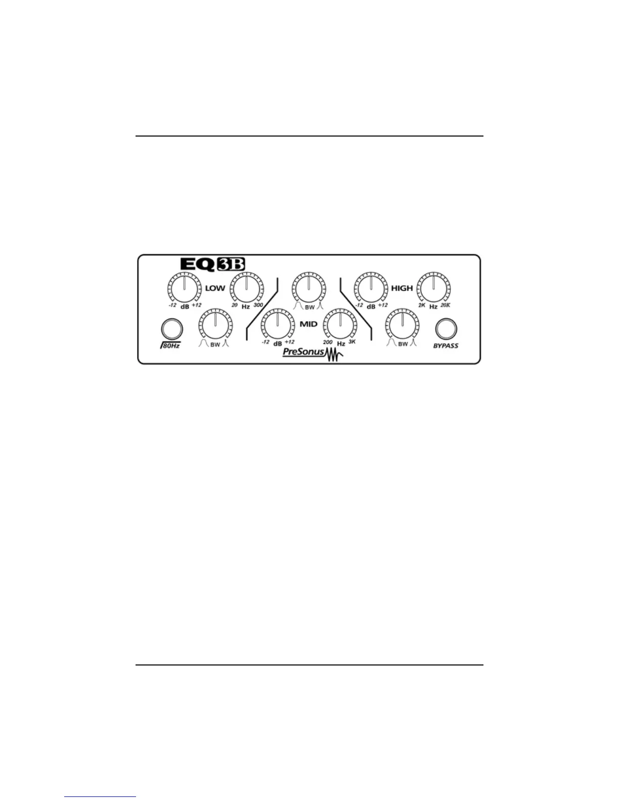 The front panel on the EQ3B is divided into three sections. These