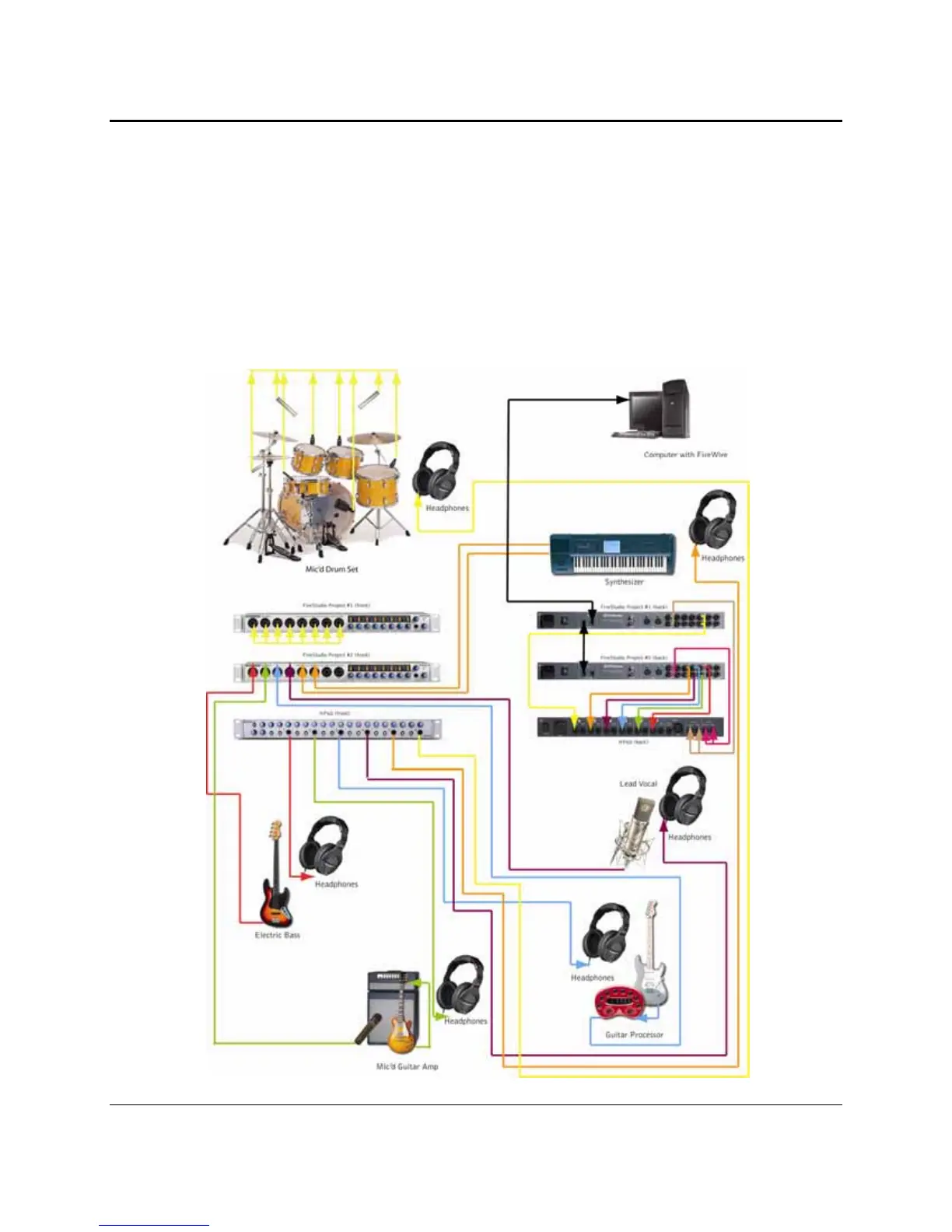 dedicated to the microphones on the drum set. All other instruments are connected to the second FireStudio