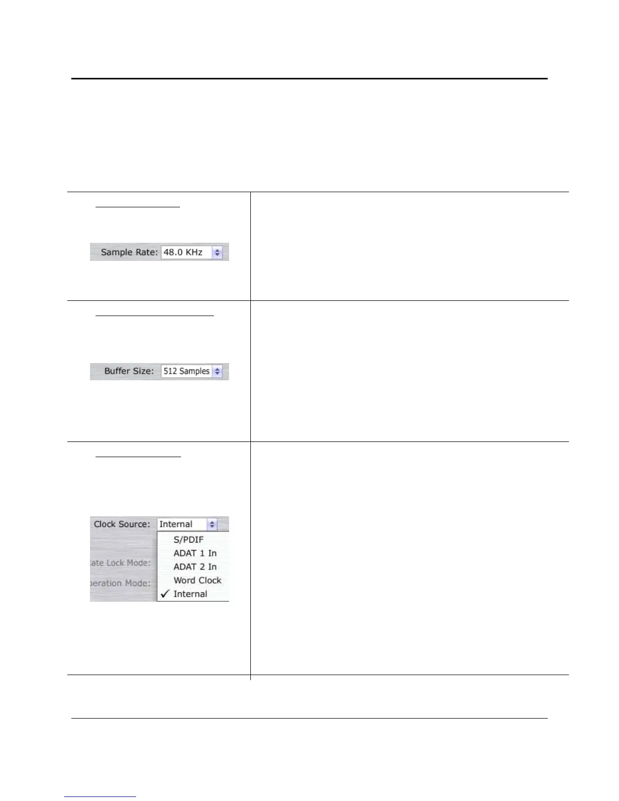 Buffer Size Selector (PC only) Changes the FireStudio Buffer Size