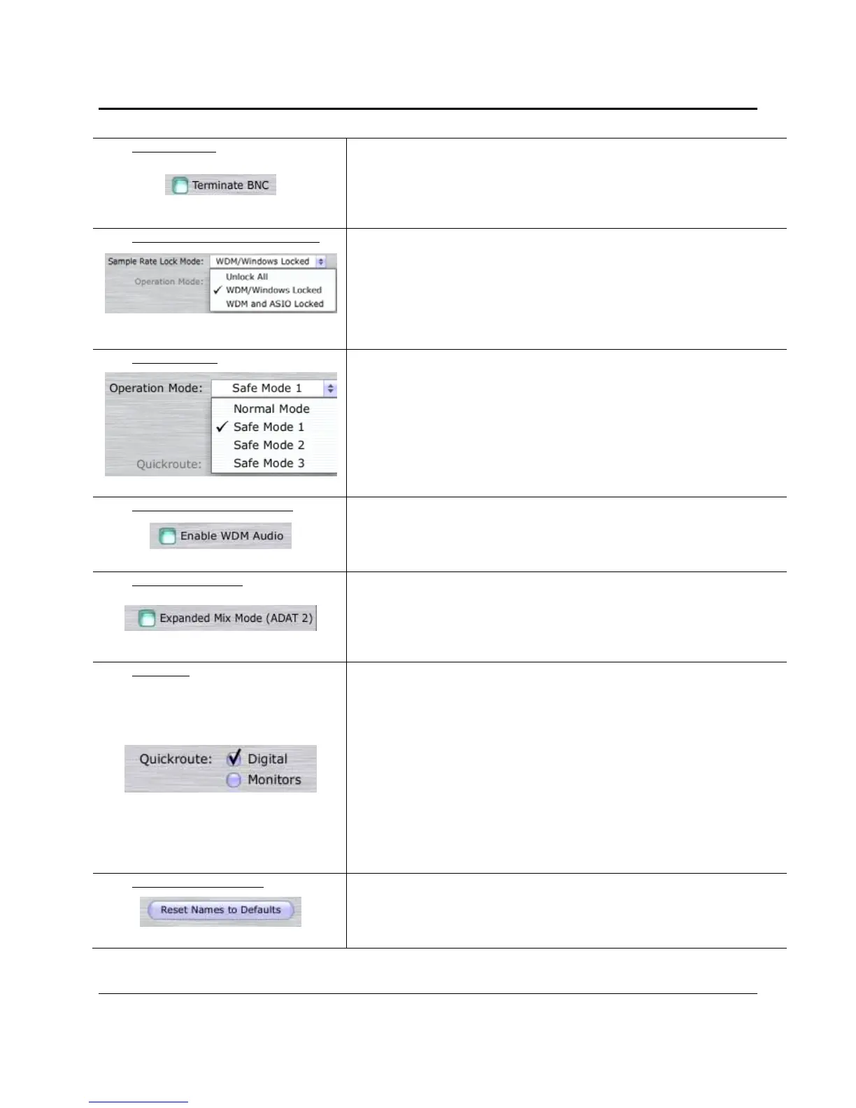 Sample Rate Lock Mode (PC Only) Sets which types of applications can change the sample rate